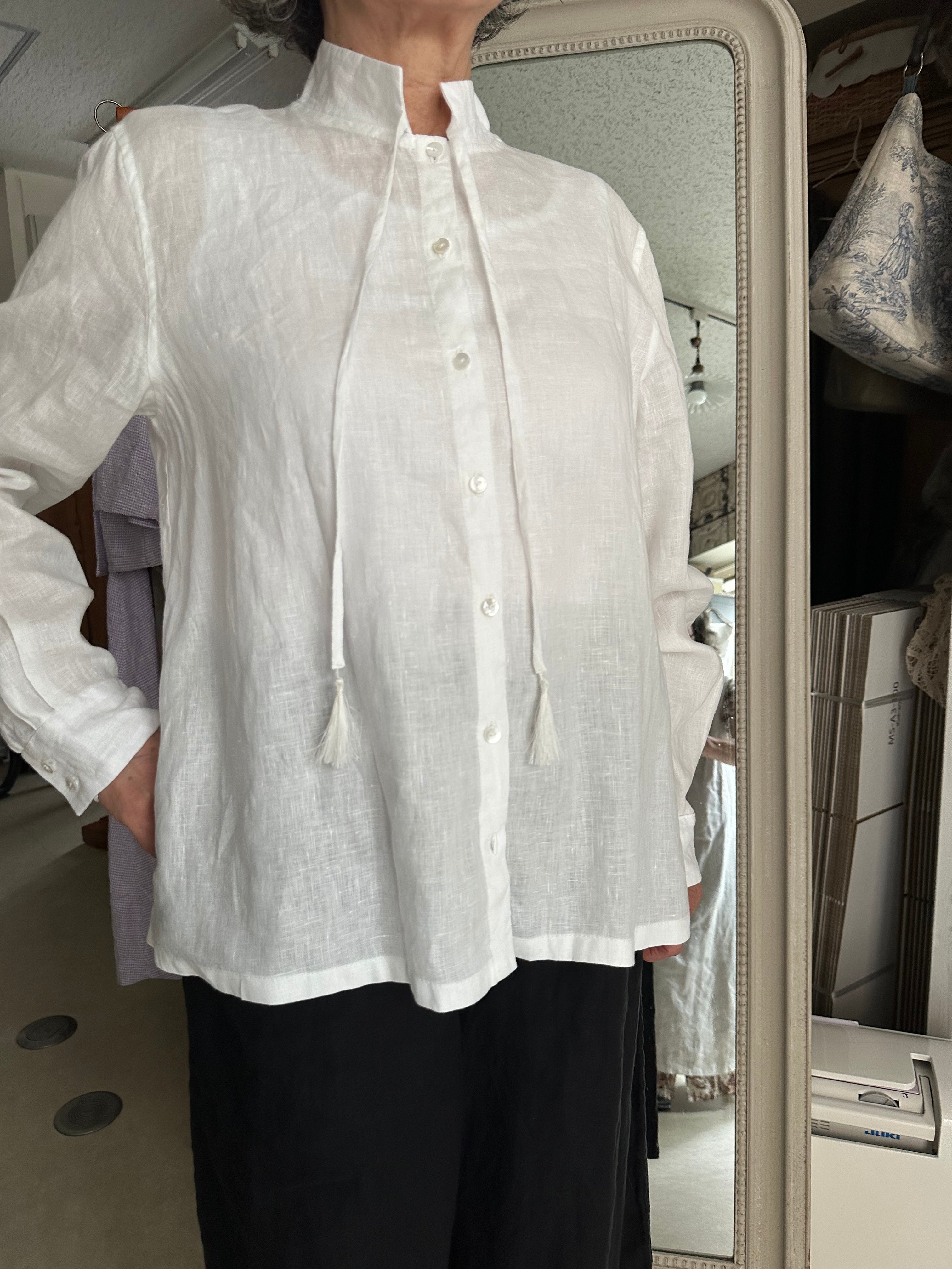 ブラウス(リネンフリンジ) -||- ナチュラルな風合いとシャープなカットで、洗練された印象を演出。リネン素材ならではの涼しげさと、フリンジディテールで一味違うスタイリングが楽しめます。 -||- 夏の陽射しを浴びて軽やかに揺れるフリンジが、あなたに自由を語りかける。忙しい日々の中でも、ちょっとした動きで気分をリフレッシュさせてくれる、特別な一枚。 -||- ※商品の取り扱いには、専用の洗濯方法をご使用ください。